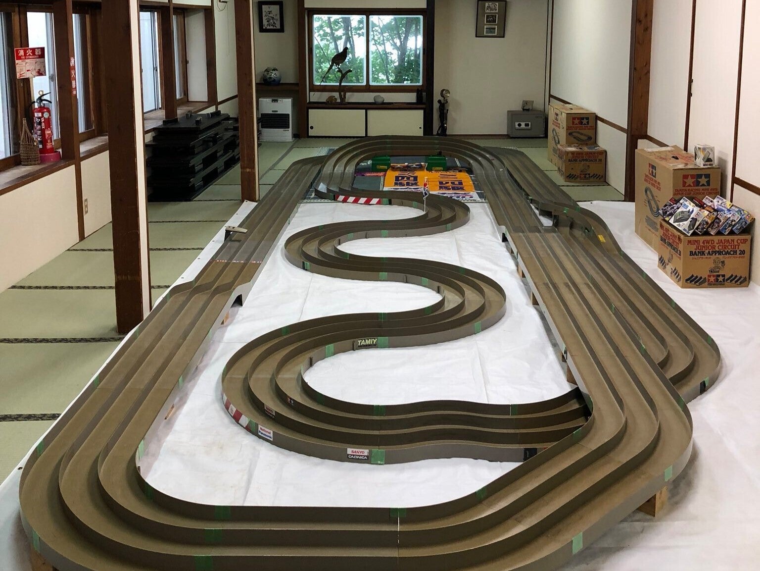 36畳の大広間に巨大なミニ四駆コースを常設!ご宿泊される方には24時間、無料で開放されています!