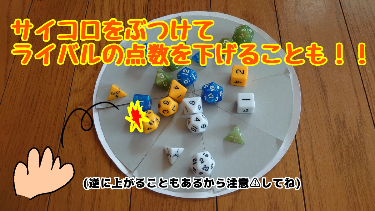 でもライバルのサイコロでは数字通りの点数ではなく、どんなサイコロでも出目に関わらず1個辺り2点にしかならない!!