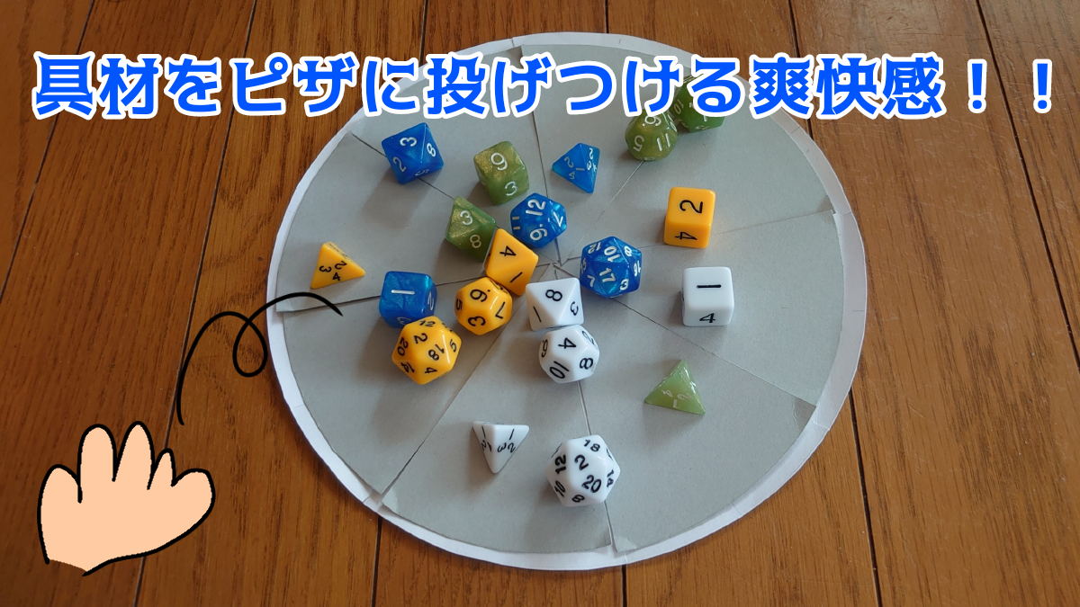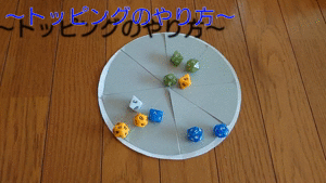 トッピングは各プレイヤーが順番にサイコロ(具材)をピザに向かって投げて行います。
