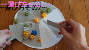 だからできるだけライバルのサイコロが乗っかっていないピザを選ぶか、自分のサイコロを使ってライバルの邪魔をしちゃおう!