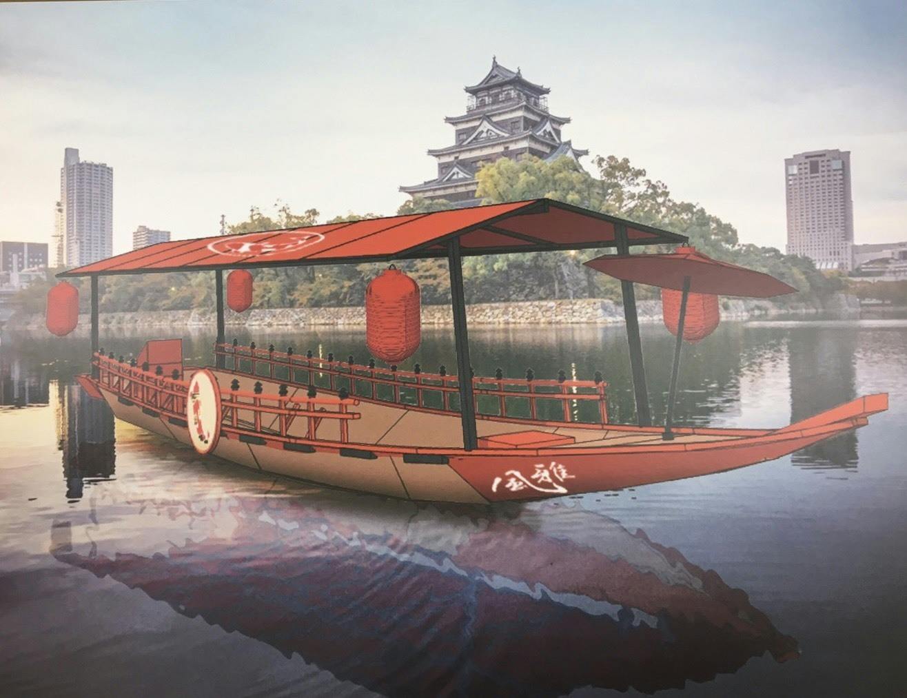 毛利輝元の時代を彷彿とする遊覧船を作ります。支援者の皆様が中心となり、 広島城のお堀の上で時代を感じながら広島の魅力に浸って頂きたいと考えています。