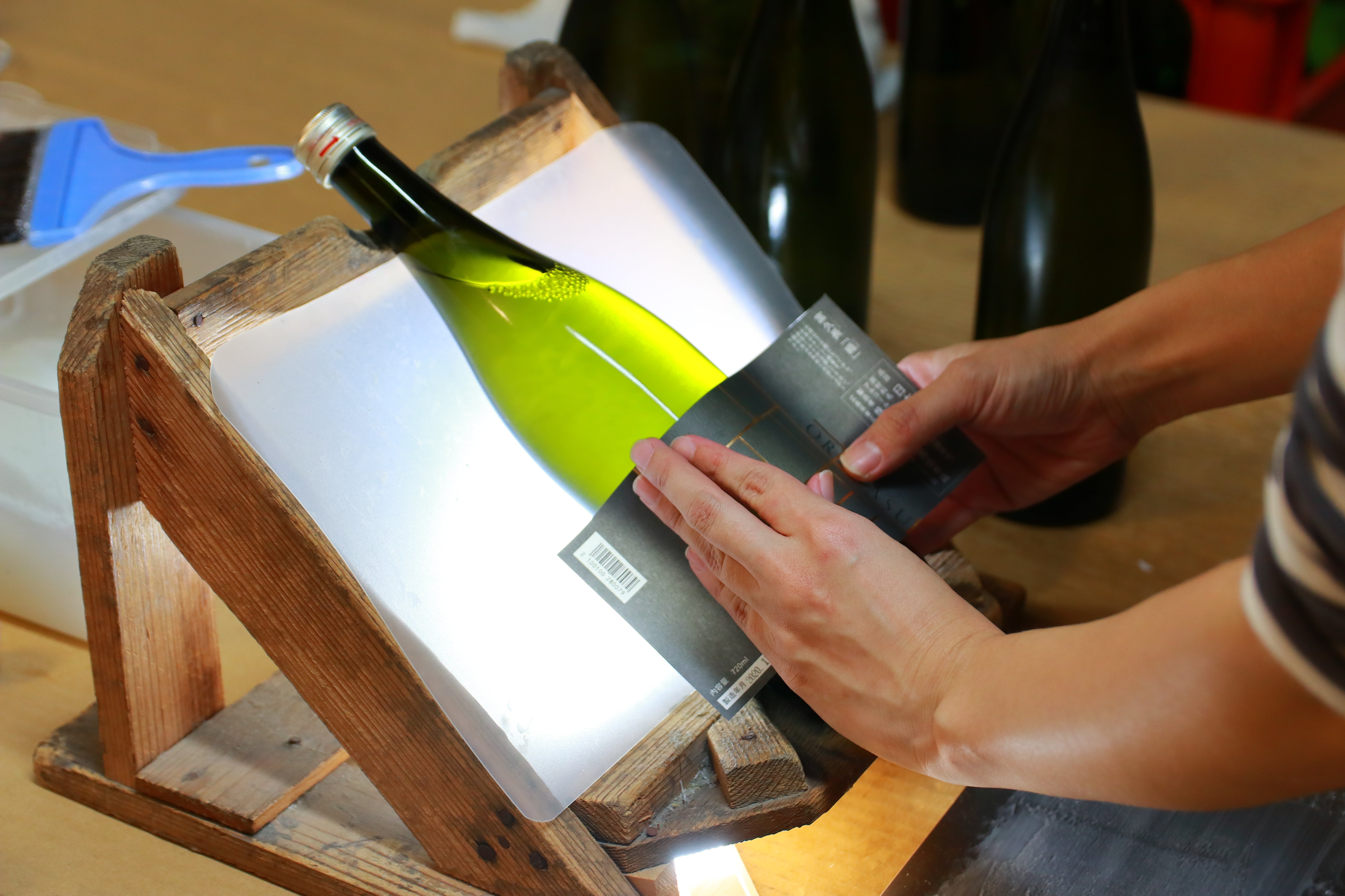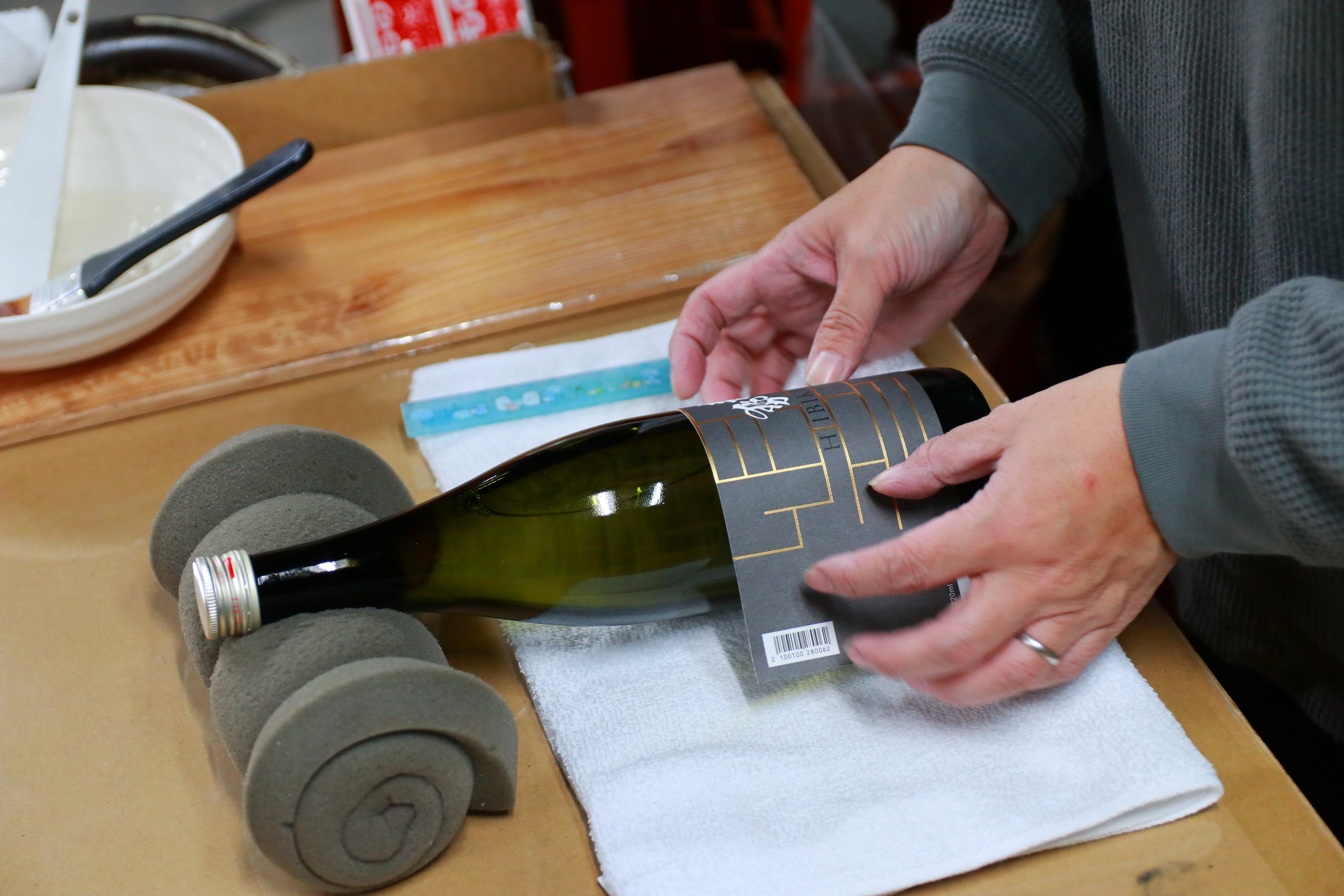 皆様がイメージするラベル貼りは、機械で「ウイーーーーン。ペタ。」というイメージをされる方が多いと思いますが、実は手で糊(のり)を使い貼っている蔵元が多いのです!