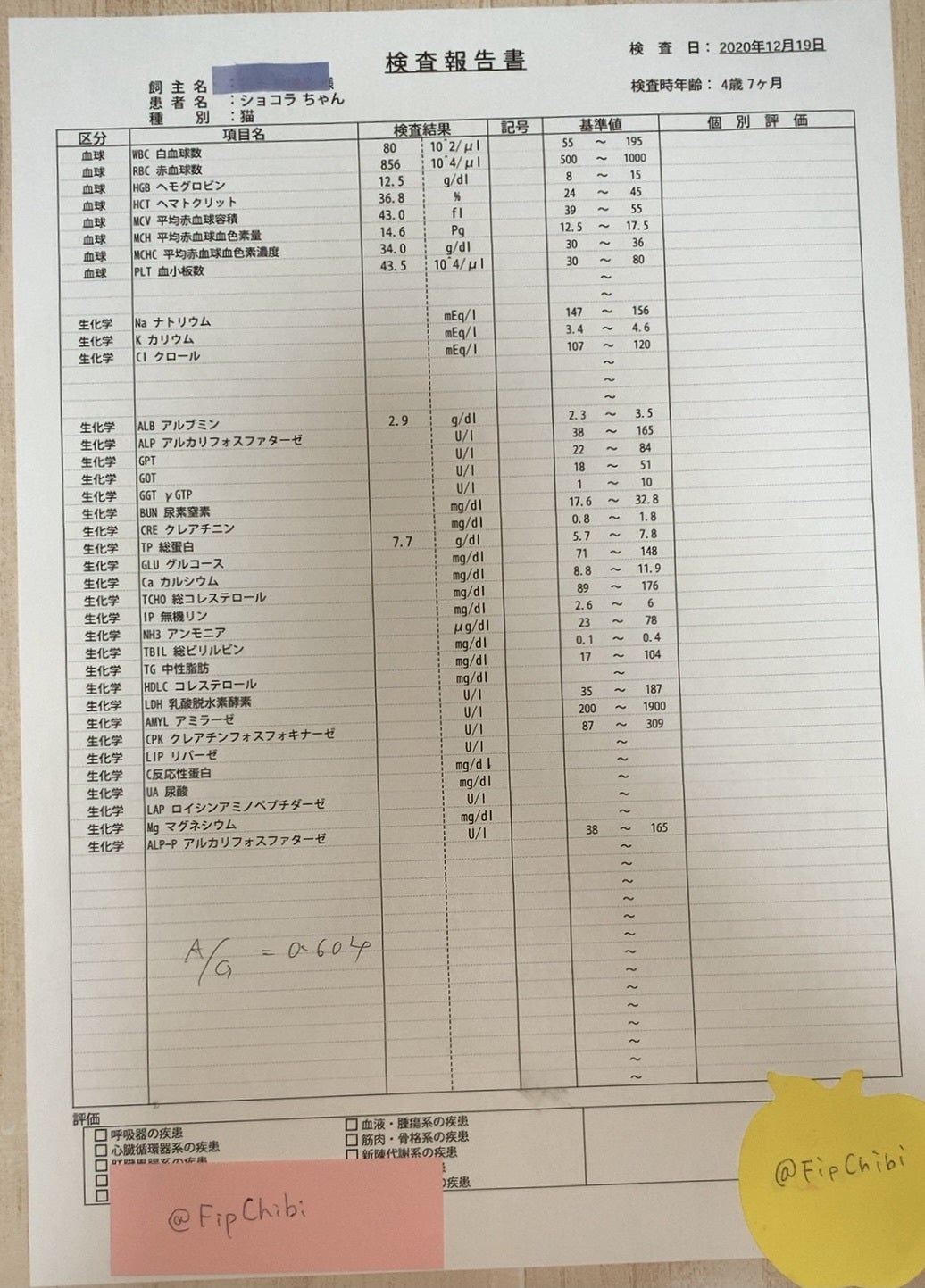 お久しぶりです。村田です。5/8は2ヶ月ぶりの定期検診を受けてきました。出掛ける用意をしていると久しぶりだからか元気になったからなのかキャリーに入るのを全力で拒否したり鳴いたりと嫌がり方が前回までとは比にならない程でした(´ヮ`;)結果ですがA/G比も0.652で問題なく体重も5.10kgに増えており、経過は「順調」と言って頂けました!(次は3ヶ月後の受診でOKとの事だったので8月頭を予定)「寛解」のお言葉は今回も出ませんでしたが所々禿げてしまっていた毛もすっかりふわふわに戻り、毎日遊んで甘えて、時折兄猫とじゃれてと本当に元気に過ごしています。また、ちびは5/10で5歳になります。FIP発覚時は年を越せるかもわからなかったちびがこんなに元気な姿で誕生日を迎えられることが嬉しくてたまりません。皆様のご支援があったからこその日常です。本当にありがとうございます。経過観察5ヶ月目(本来は3ヶ月で終了)であることと、ちびが無事に5歳の誕生日を迎えられることからこれを節目として、CAMPFIREでの「活動報告」は今回をもって一旦終了とさせて頂こうと思います。(また何か重要な報告があればUPするかもしれません)Twitterの方では引き続き検診結果のご報告等をUPして行こうと思いますので今後はそちらをご覧頂けると幸いです。(URL:https://twitter.com/FipChibi)FIP治療開始から約9ヶ月、皆様から頂いた数多くの暖かいお言葉やご支援に支えられてここまで来れました。このちびの闘病記録が少しでも同じ病気で苦しむ猫ちゃん達の手助けや希望になればと思います。本当にありがとうございました。