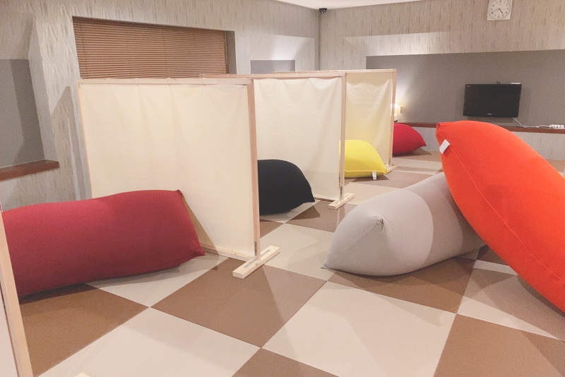 休憩室も自由に過ごしていただけるプライベート空間になっており、一日中ゴロゴロしながら気ままな時間を過ごしていただけます。