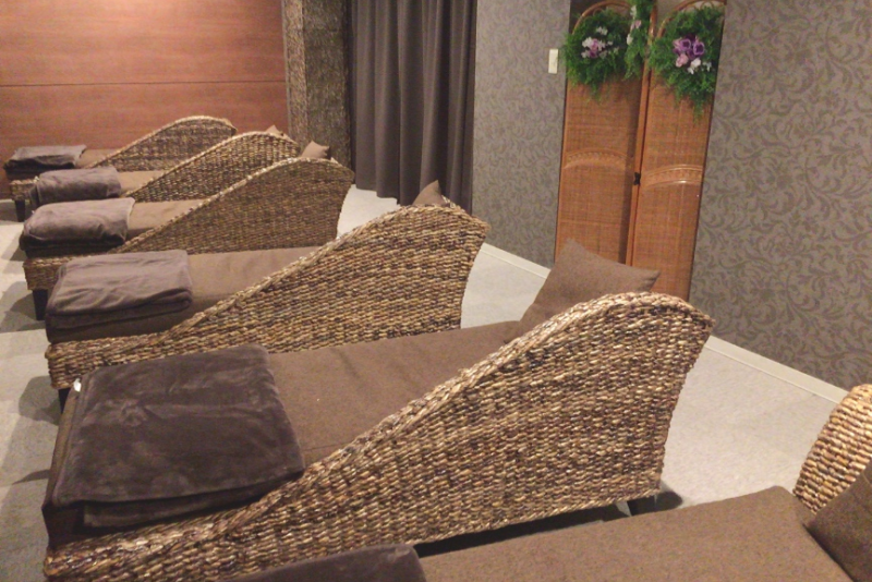 また、ゆっくりと体を休めていただけるスペースとして、バーデゾーン内の岩床浴、キャビン、TV付リクライニングチェア設置のリラックスラウンジ、ヨギボーを設置した2階サロン、女性専用スペースがあります。また。Wi-Fi の接続、4,000冊の漫画もあり、お気に入りのスペースでくつろぐことが出来ます。