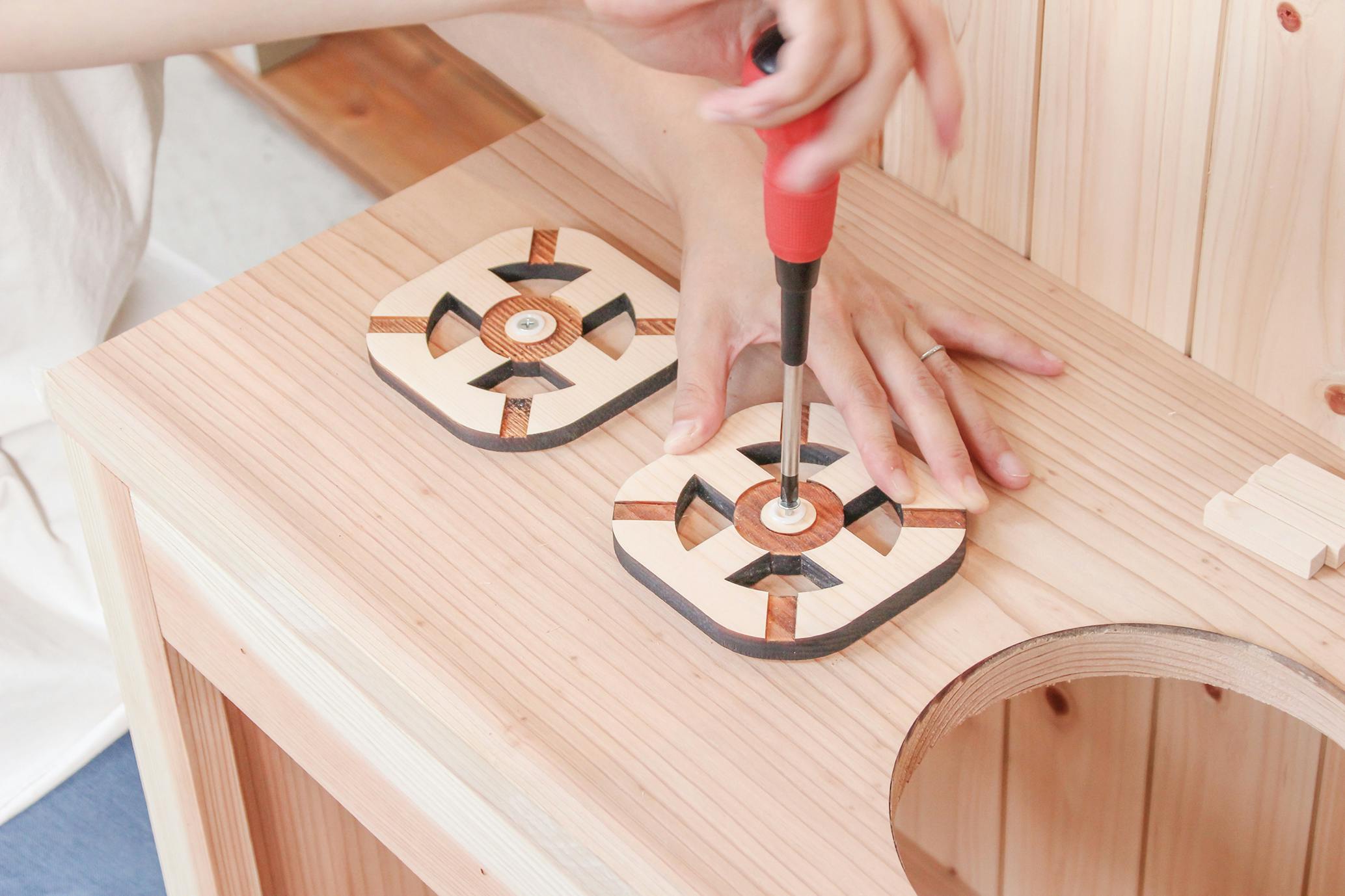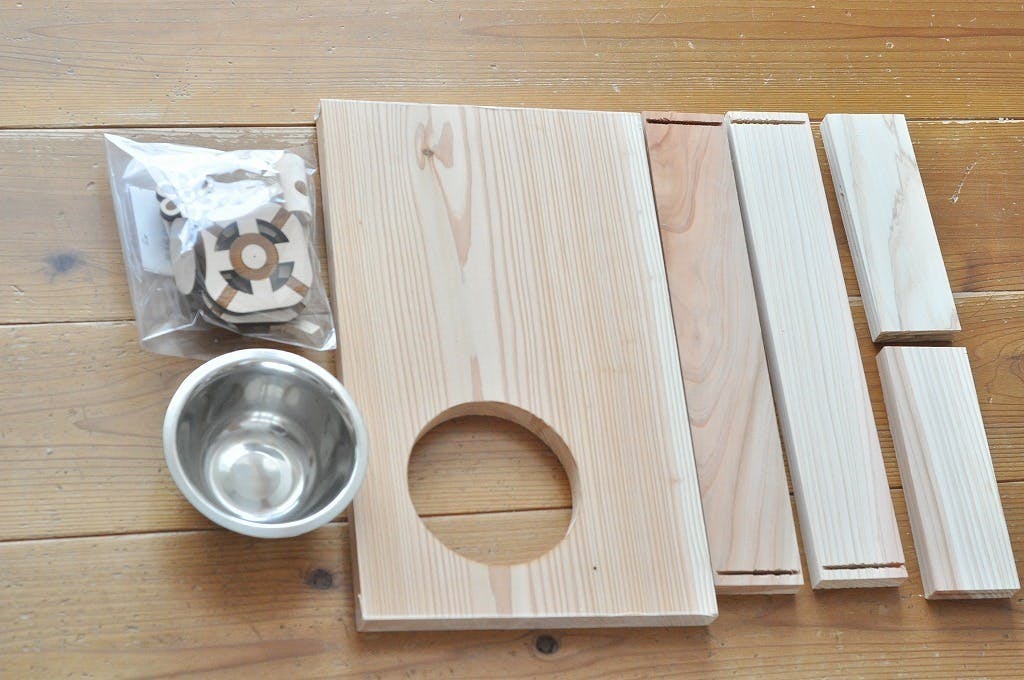 今回 このキットは女性一人でも作れて、木工の知識が無くても作れるキットにしました。