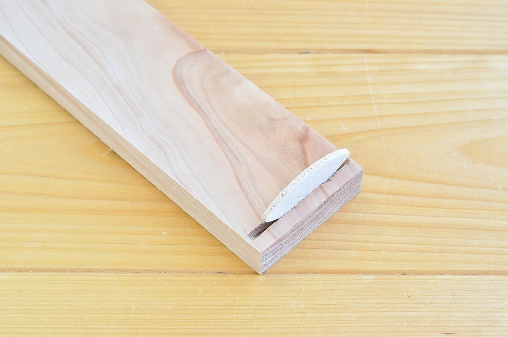 ここに付属のビスケットジョイントを入れれば簡単に接合します。