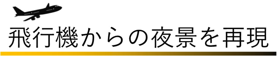 ① 3万フィート上空の飛行機の窓から眺める大都市の幻想的な景色を自宅で再現。