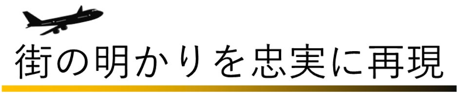錯視とは俗に「目の錯覚」のこと。目から入った情報に脳が補正をかけることで生じます。NiteLanding Lampはこの錯視効果を応用することで、吸い込まれるような幻想的な夜景を再現することに成功しました。