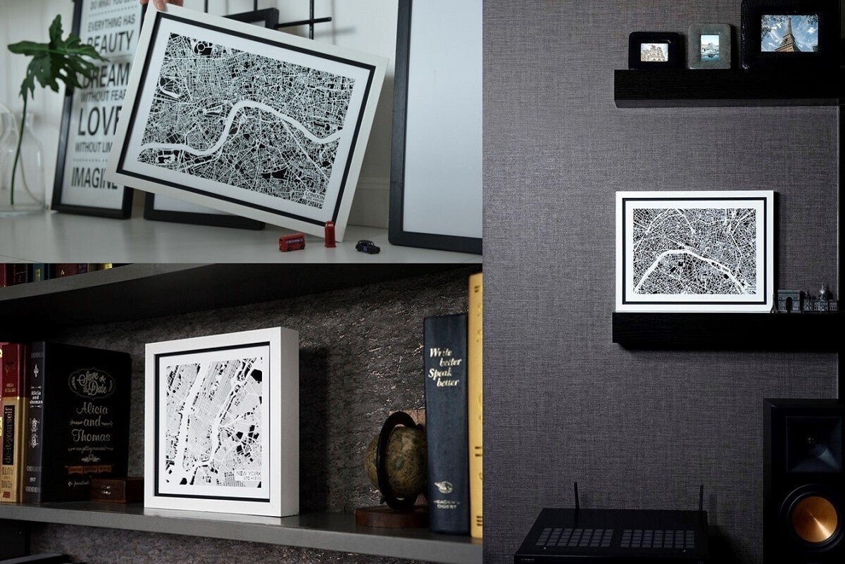 各都市のアートワークは、精巧なカットと細いライン(0.6mm)で構成されています。