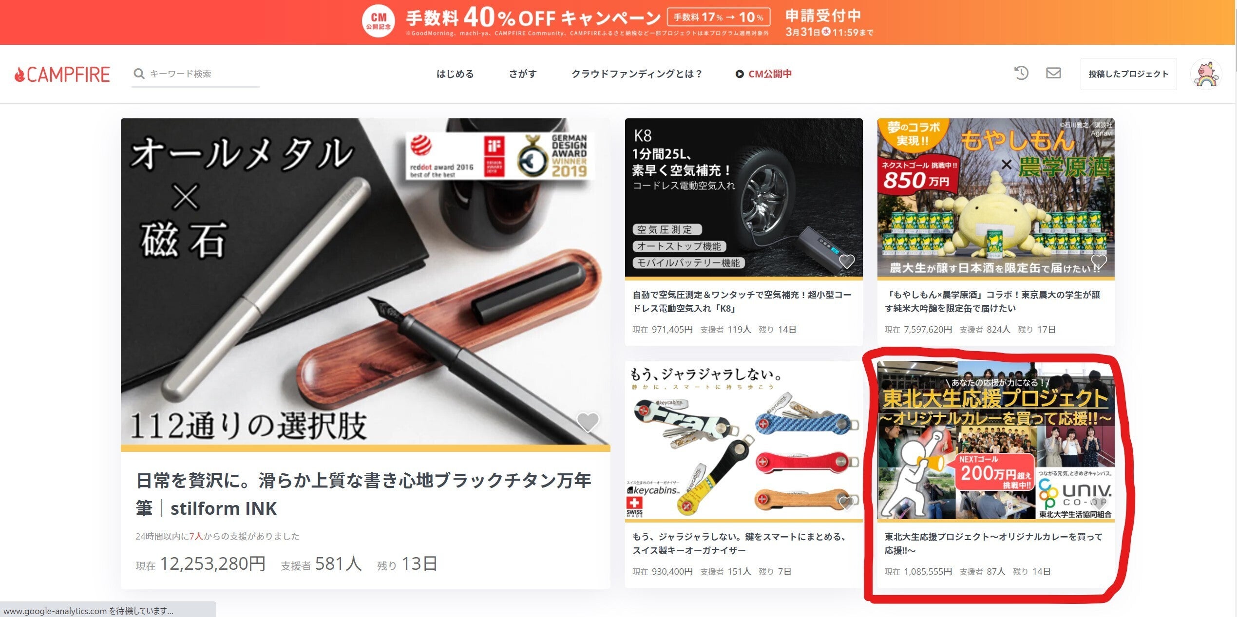 本日8日~11日までの期間中、CAMPFIREトップページにて本プロジェクトが掲載されています。
