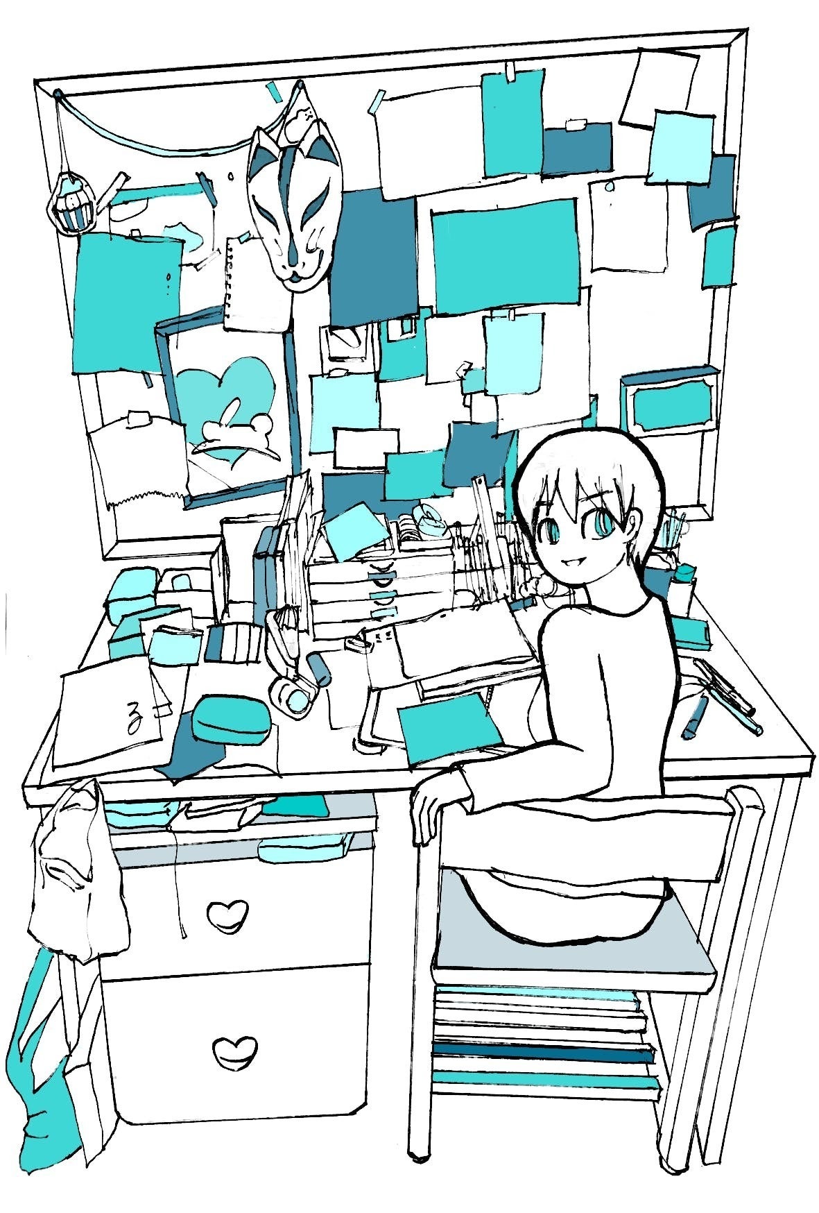 部屋、日常、キャラクターなどがイラスト作品の主なテーマです。