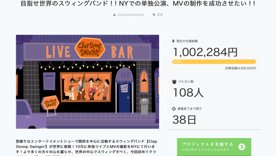 10月に単独ライブとMVの撮影をNYにて行います!より多くの方々の心を躍らせ、世界の中心でスウィングすべく、今回初めてクラウドファンディングに挑戦しています!
