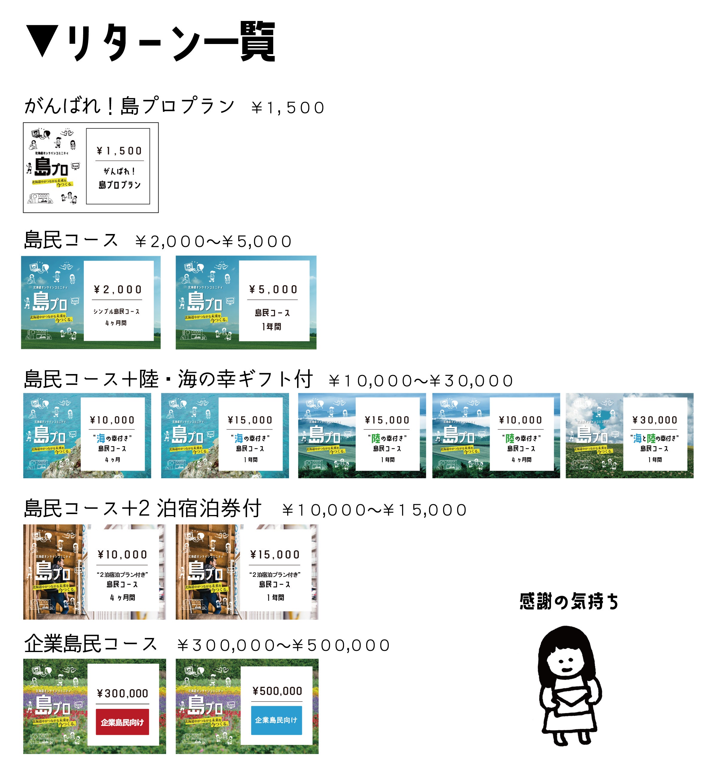 →島民にはならずとも、この活動を応援したいと思ってくれている方々向けのリターンプランです!