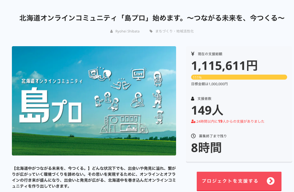 北海道中で人と人との繋がりが育まれ、応援したい人が周りに増え、島民全員でその方々を応援し、その活動を国内外に届ける。それによって北海道ファンが増え、その方々が島民となる。この流れが繰り返され、北海道中、世界中に、北海道ファンが増えていくという循環を島民の皆さまと一緒に生み出していきたいです。