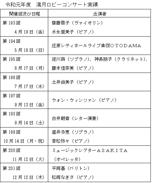 2020/12/01 10:3211月30日(月)14時と19時の2回 満月ロビーコンサートを実施しました。19時のコンサートはインターネット配信をしました。 もっと見る