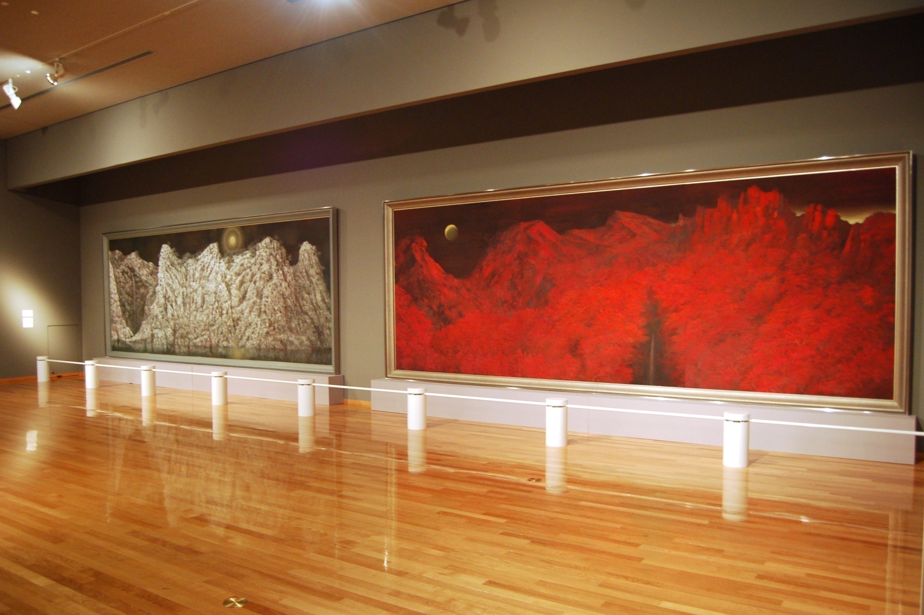 当館は県北三次市にある❝日本で一番、月が美しく見える美術館❞をキャッチフレーズとする奥田元宋・小由女美術館です。今年は開館15周年目を迎え、リニューアルした常設展示室で「奥田元宋と奥田小由女の世界」を堪能していただくとともに、年間を通じ様々な特別展覧会を企画しています。夏に開催し、多くの皆様にご好評をいただいた丸木位里作品の集大成「墨は流すもの-丸木位里の宇宙-」展をはじめ、現在開催中の特別展「画業25周年・芸能生活45周年 片岡鶴太郎展 顔 -faces-」、秋から年末にかけての「生誕140周年 熊谷守一展 -わたしはわたし-」などなど。めったに見ることのできない貴重な展覧会にぜひお越しください。