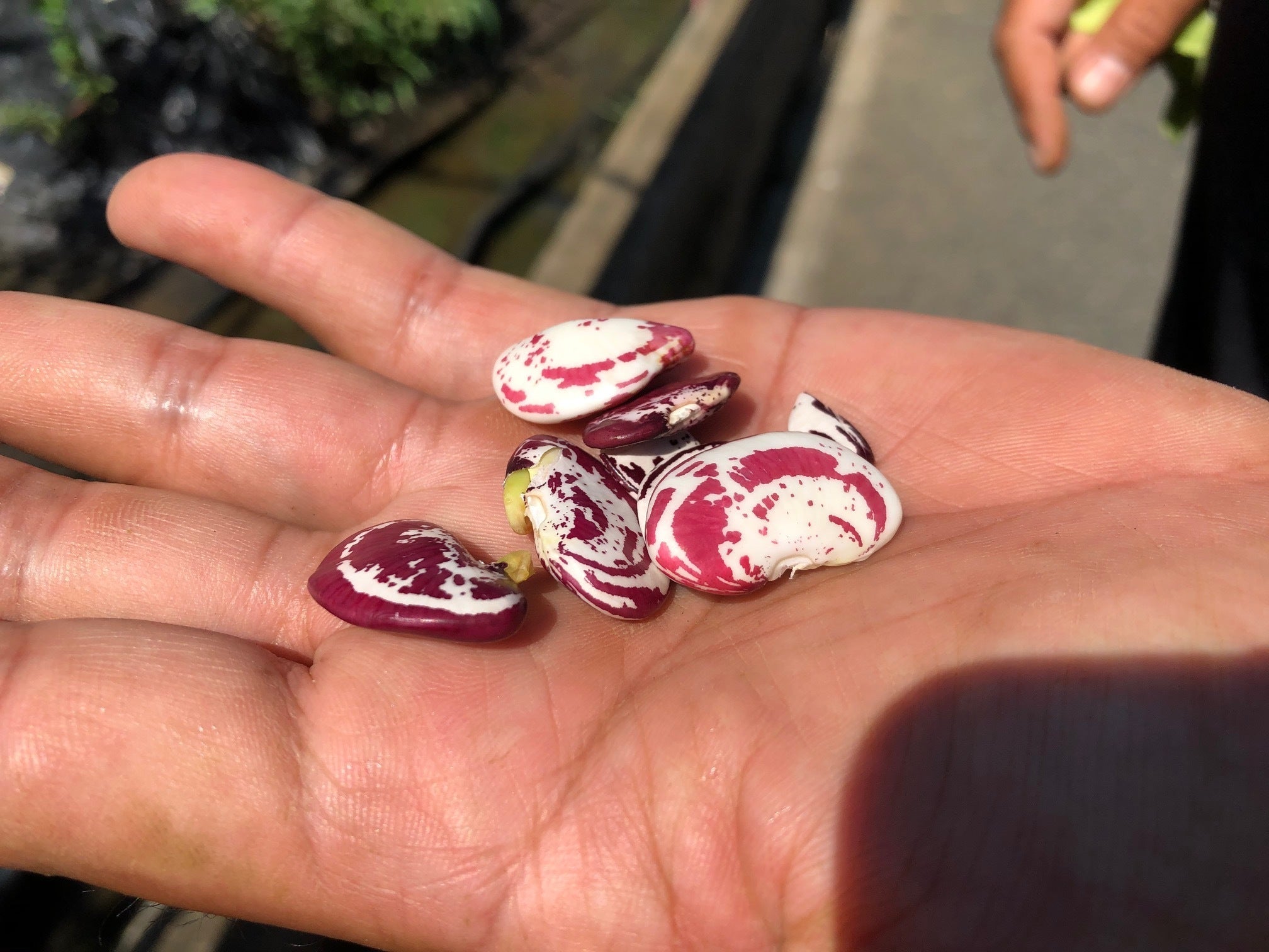 ↓さやから出てきたのはマーブル模様の豆。綺麗ですよね。