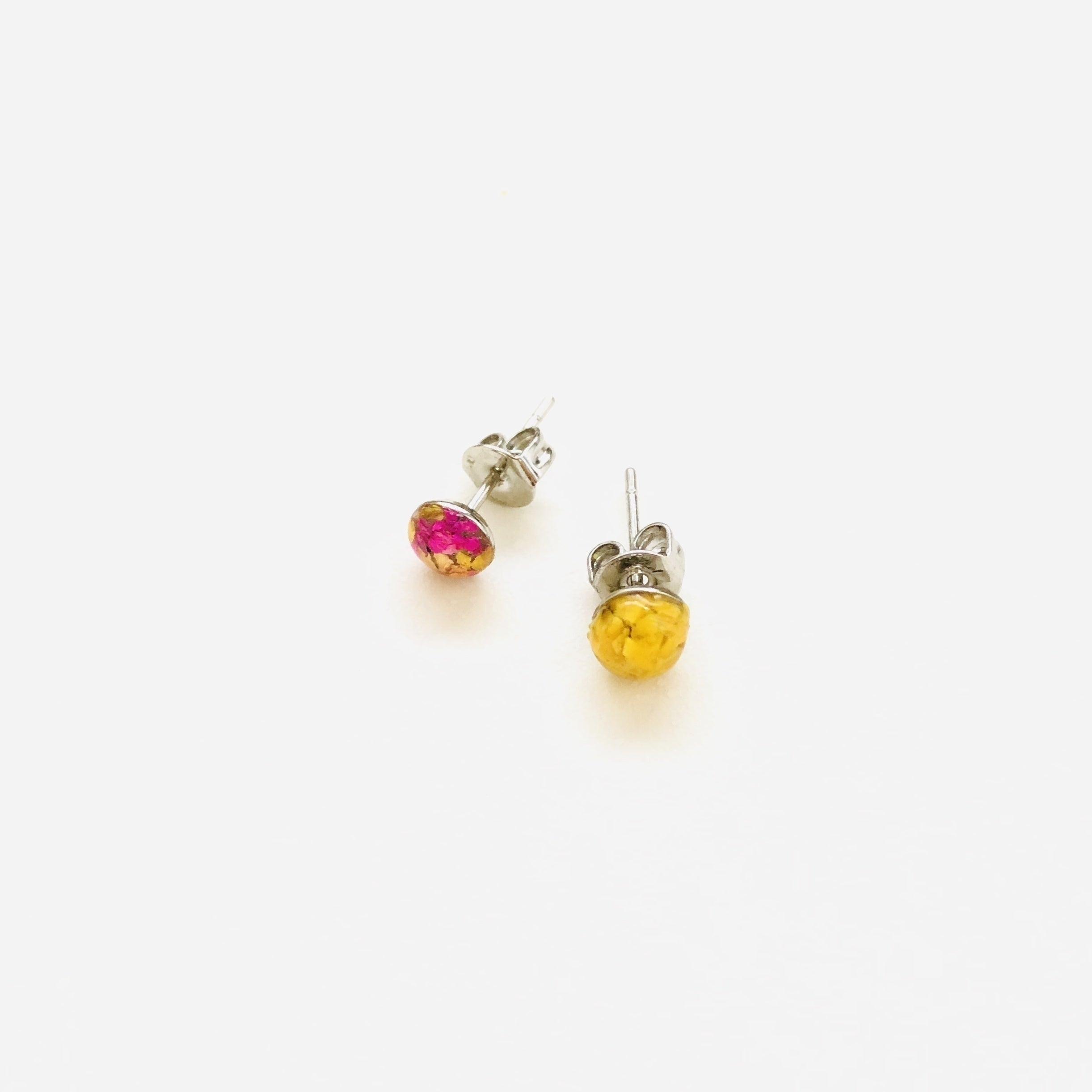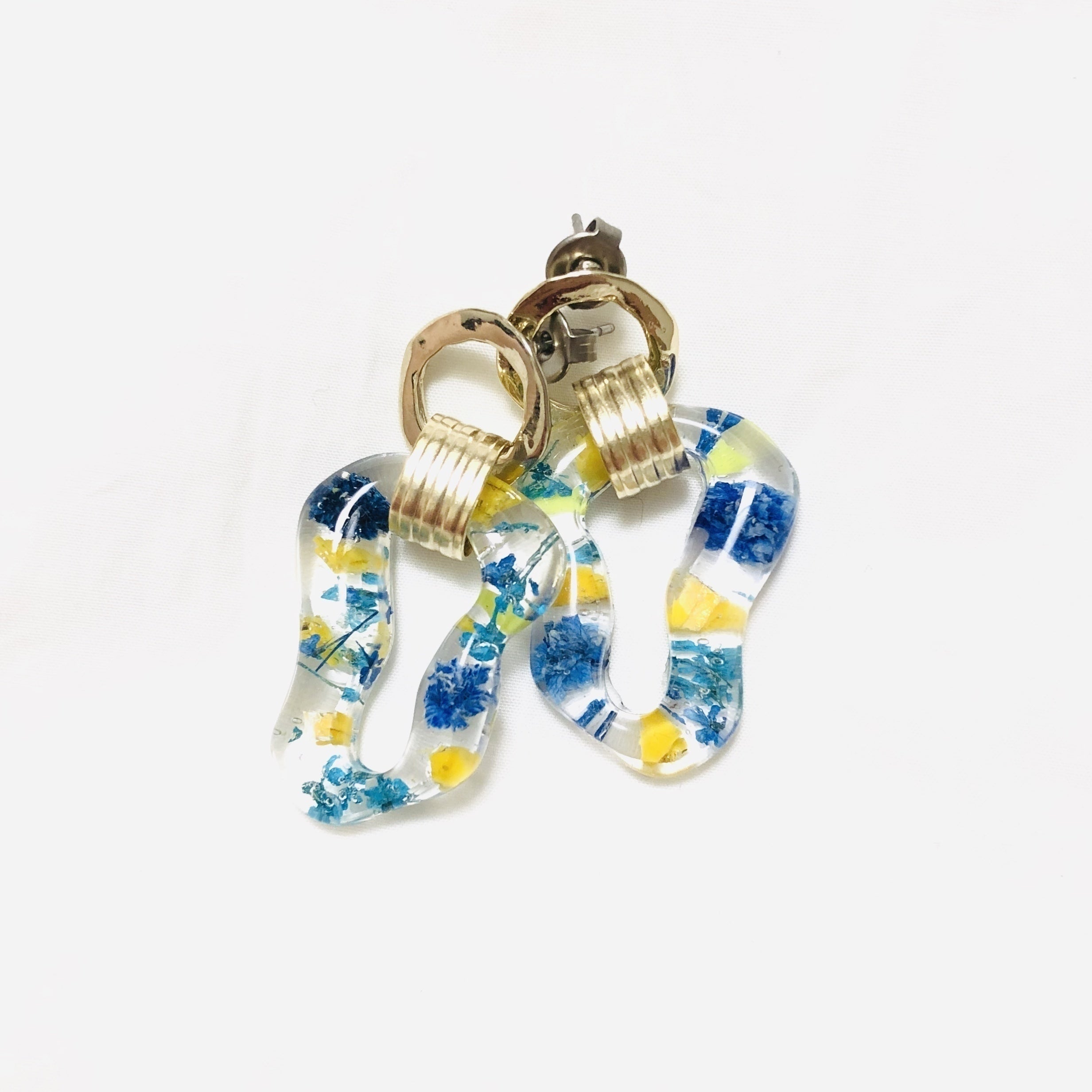 同じく福岡県産の海洋プラスティックと廃棄される予定だったドライフラワーを使用したピアスです。 どちらも何もしなければ海に漂い動植物に影響を与えるかまだ使える状態で廃棄されるものでした。
