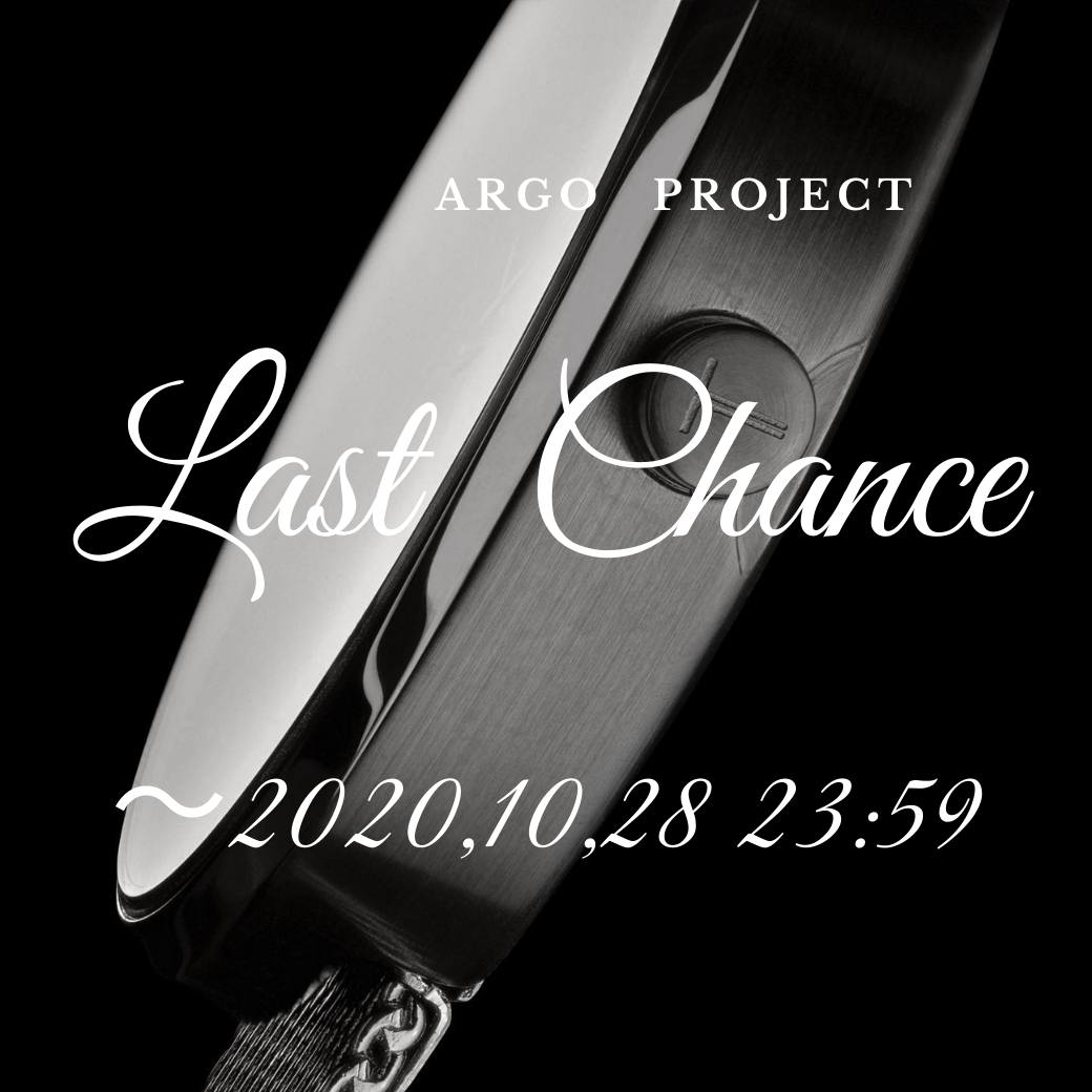こんばんは!ARGOプロジェクトチームです。9/10日から開始した約50日間に渡るARGOのクラウドファンディングも、残すところあと5時間となりました。今日まで沢山の方からのご支援と、応援のメッセージを頂き現在、総支援金額400万円を達成しております!皆様に本当にありがとうございます!!そして、これが本当の最後になります。悩まれている方、最後にもう一度ARGOをご検討をくださいますようお願い申し上げます。https://camp-fire.jp/projects/view/316791身につけた方の毎日に長く寄り添い続け、共に新たな未来を紡いでいく腕時計。気に入ったデザインや気に入ったディティールの腕時計は、見るたびに嬉しさを感じたり、仕事への意欲が沸いたり、特別な思いが宿るものです。共に時を刻み、沢山の喜びをもたらす腕時計との出会いは”一期一会”です。一度きりの情熱的な人生を送るあなたのナビゲーションに、ARGOはいかがでしょうか?星空のように輝くARGOとともに、あなただけの輝く”時”が刻まれる未来を心より願っております。どうぞ最後まで応援を宜しくお願い致します。