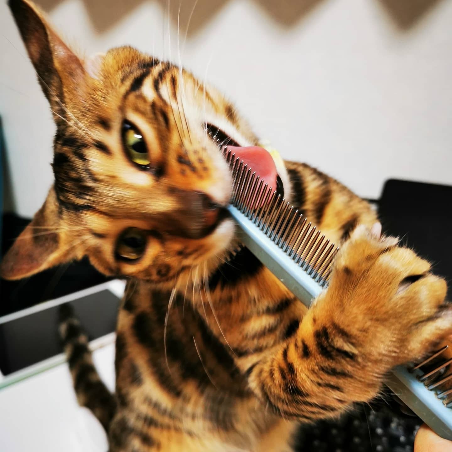 ただ、ブラッシングをしようとすると、櫛にじゃれついてやらせてくれません。