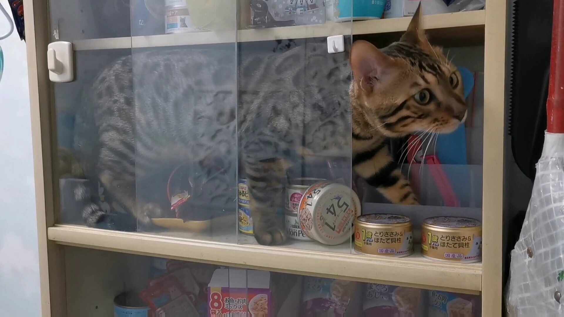 本日、猫餌用の棚の扉の開いてる場所が10cmほどのところから侵入している現場を確認。