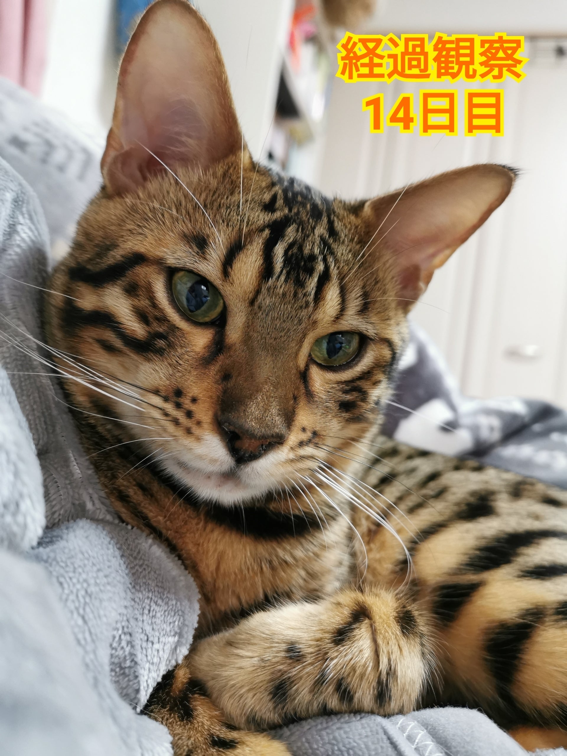 11/6 経過観察14日目寒くなってきてので、毛布の上でくっついてくるようになりましたただ、ふとんの中に入ってくることはないです。入ってくれてらあたたかいのにと、ちょっと残念な気分です