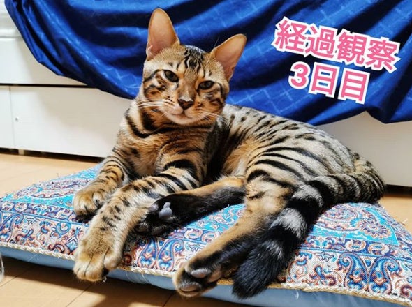 10/29 経過観察6日目体温 38.4℃体重 4.0kg今日は、昨日乗った棚の上にまた飛び乗り、ごはん用の食器を落として割ってしまいました。「りーんー!」と、呆れるように怒られてました。割られることを想定して、同じお皿を余分に買っておいてよかったです。凛太郎、元気です!