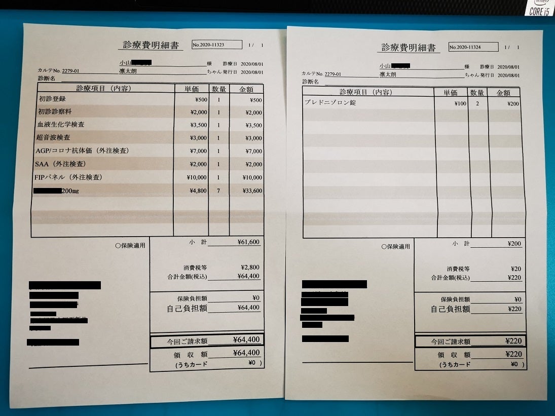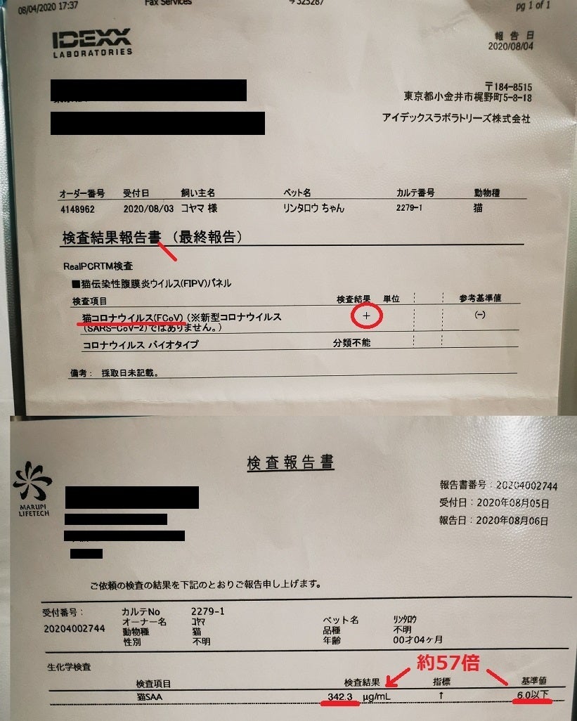 前回出した検査結果が届いており、FIP陽性とわかりました。