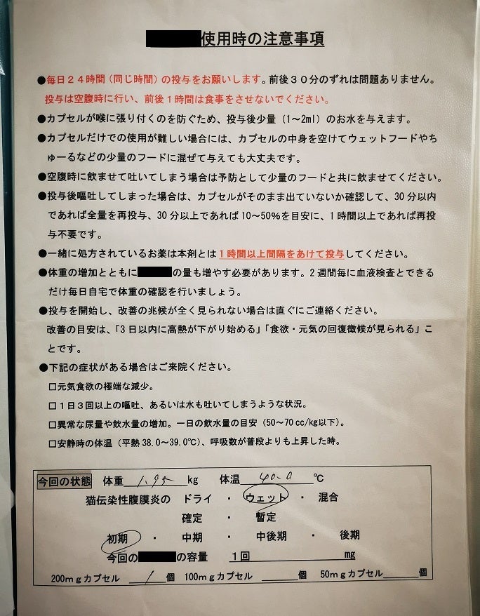 全てのFIPの猫たちに、この薬が有効であるという趣旨ではありませんことを、ここに書かせていただきます。