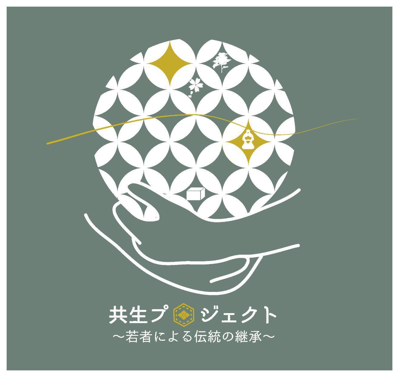 2つの手は職人と若者の手。二者による相乗効果で伝統を広めていこうという想いを込めました。手が大切に抱えている丸は日本伝統の象徴。七宝柄は円満、調和、ご縁などの願いが込められた縁起の良い柄です。その中にプロジェクトに縁してくださった伝統工芸の柄を忍ばせており、これからどんどん増やしていく予定です!