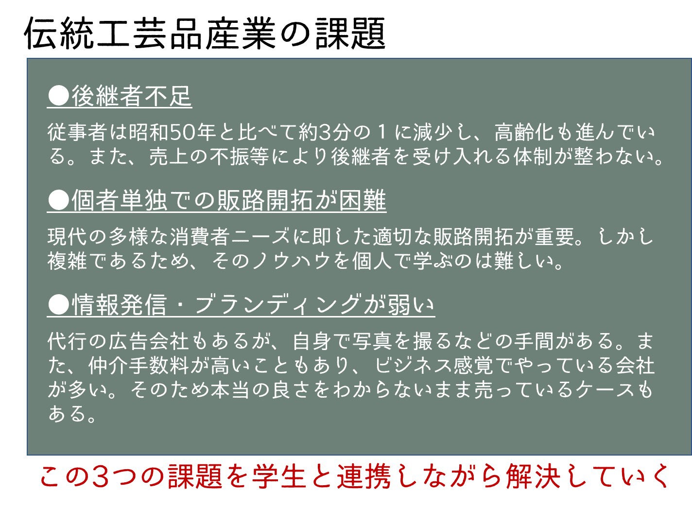 さらに新型コロナウィルスの感染拡大により、伝統工芸品の売り上げ低下に歯止めがかからないのが現状です。しかし、様々なことが変わりゆく今、変わらずに未来へ残していくべきものの一つがこの伝統工芸品だと思います。こんな世の中だからこそ、私たち東京の若者がこのプロジェクトを成功させ、伝統を未来へ継承していきます!