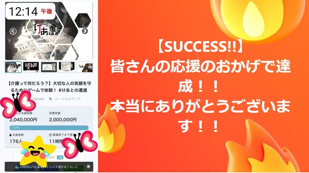 おはようございます!プロジェクトオーナーの佐々木です。早いもので2020年も半月あまり。昨日発表された今年の漢字は「密」ということで、ある意味今年を象徴している漢字だと思います。※予想としては、 「家」(ステイホーム、家族との時間)や、 「新」(新型、新しい様式)あたり?と思っていましたが。。。それはさておき、皆さまにご支援いただきましたプロジェクトの進捗についてご報告をさせていただきます。~プロジェクトの進捗状況~●お礼のメッセージ 【対象リターン】 ・すべて →すべてのリターンの発送を終えたうえでメッセージを送らせていただく予定です。 年明けを予定しております。●けあとの遭遇®ゲーム体験 【対象リターン】 ・ゲーム体験コース ・ワークショップ体験コース ・一緒にワークショップ体験コース ・一緒に体験&応援サポーターコース →本日12/15付けにて対象の方にはメールにて、 「ID&Pass」をお送りさせていただきましたので、 ご確認のほどよろしくお願いいたします。●けあとの遭遇®オンライン体験会 【対象リターン】 ・ワークショップ体験コース ・一緒にワークショップ体験コース ・一緒に体験&応援サポーターコース →本日12/15付けにて対象の方にはメールにて、 「チケット番号」をお送りさせていただきましたので、 ご確認のほどよろしくお願いいたします。 <けあとの遭遇®オンライン体験会日程> 月に1~2回(状況に応じて開催増減あり)開催してまいります。 12月は、明日12月16日(水)19:00-21:00頃に開催予定、 1月は、1月28日(木)19:00-21:00頃に開催予定です。 ※「特別参加券(クラファン)」 にてご参加いただけます。 お申し込みの際には、備考欄に「チケット番号」をご入力くださいませ。 <お申し込みページ> https://and-fam.com/sougu-event/●けあとの遭遇®ファシリテーター養成講座 【対象リターン】 ・ファシリテーター養成講座コース ・ファシリテーター養成講座コース for Carer/Care Worker ・ブロンズスポンサー&セットアッププログラム →12月上旬から養成講座スタート。 1回3時間のオンライン講座を3回実施しております。●スポンサー&応援サポーター特設ページ 【対象リターン】 ・応援サポーターコース ・一緒に体験&応援サポーターコース ・ブロンズスポンサーコース ・ブロンズスポンサー&セットアッププログラム →12月上旬に特設ページの開設し、微調整を行っておりました。 本日12/15付けで正式にオープンさせていただきました。 <特設ページ> https://and-fam.com/special_thanks_cf2020/●コミュニティーグループ 【対象リターン】 ・コミュニティコース →現在対象者の方々にアンケートを取らせていただいております。 年明けにコミニティの立ち上げを行えるように準備を進めております。もしご登録のメールアドレスに届いていない、どれに申し込んでいたかわからなくなってしまった!というようなことがございましたら、こちらまでご連絡くださいませ。 info@and-fam.com2020年12月15日朝プロジェクトオーナー佐々木 将人
