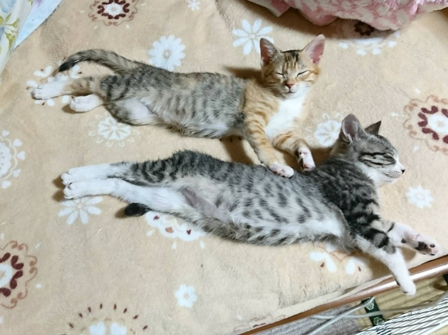 違うとこに行ったのに伸びて寝るとこは兄弟ですねw