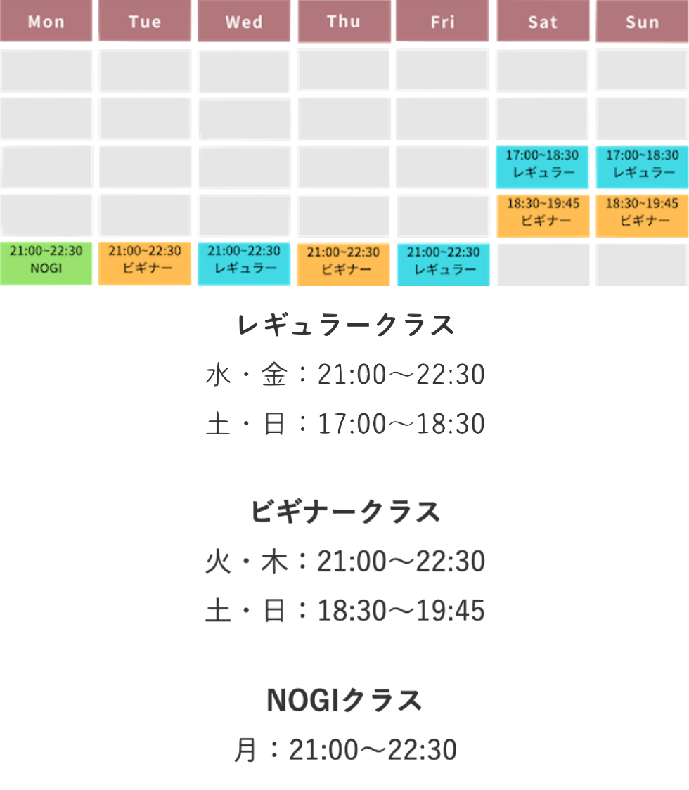 ※柔術クラスに参加する場合は、柔術着をご持参ください。持っていない方は、道場から道着を無料で借りることも可能です。