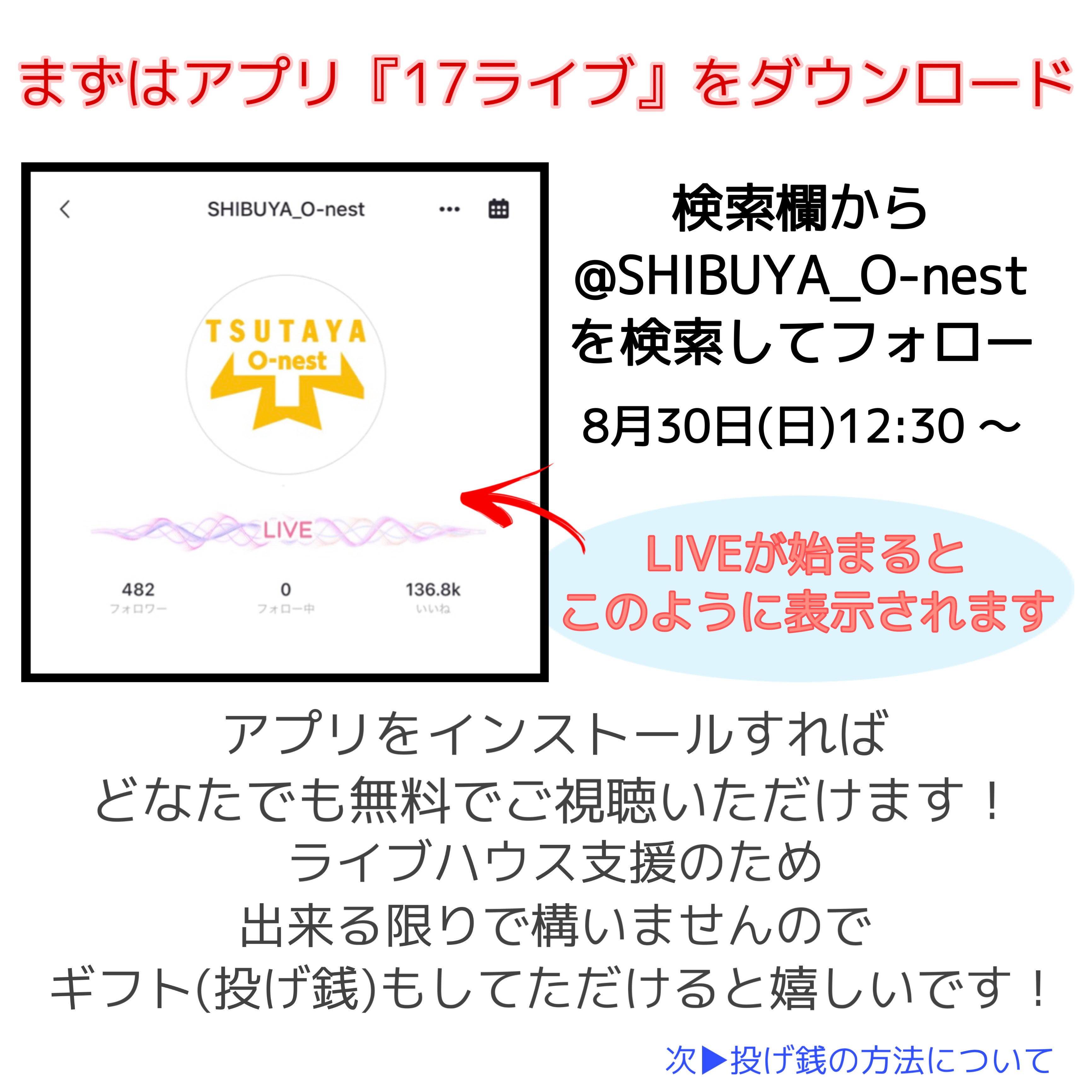 無観客ライブ(配信)ってどんな感じなのかな?という方がいましたら、8/30(日)に私がライブ配信をしている17ライブでライブハウスからの無観客ライブを配信します!