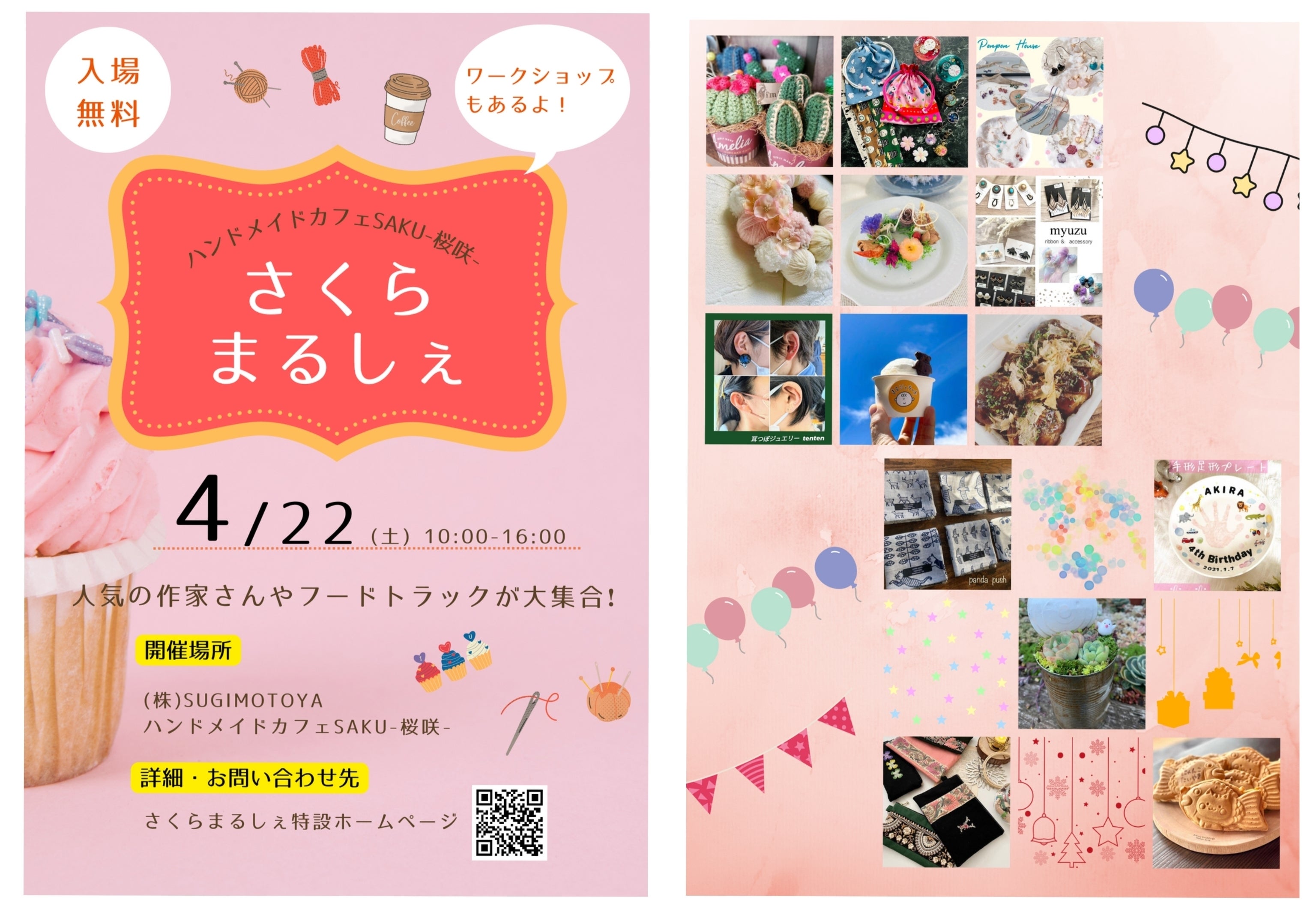 2023/04/16 23:59【活動報告20230416】 こんにちは、代表の井上です^^いつもありがとうございます。今回も盛り沢山で報告いたします。①おかげさまで主催イベント「さくらまるしぇ」を 4/22(土)10:00からお隣りの「SUGIMOTOYA」様とカフェSAKUとで 開催いたします。 専用ホームページ https://sakuramarche.studio.site/ 八王子ジャーニー様が4/17に紹介記事を上げていただけます^^②イベント出店ラッシュ! 2/5 クラフトマルシェ 済 3/25 はちおうでぃフェス 済 4/11 桑都テラスポップアップ店 済 4/22 さくらまるしぇ(主催) 4/23 SUN marche 4/30 キャンパークラフト 5/13、14 楢原&川口マルシェ 5/27 元八マルシェ 6/24、25 お福分け 7/8 八王子手仕事アートマーケット③2/26 TBSテレビ「バナナマン早起きせっかくグルメ」で ごーどん様のご投稿でカフェSAKUのダブルパンカツカレーライスが 紹介いただきました。④「八王子市の地域づくりの取り組み」に紹介いただきました。 https://www.youtube.com/watch?v=gfst73hfDaQ⑤八王子TVでクラフトマルシェの様子を紹介いただきました。 https://youtu.be/yf1iZKOaHSk⑥八王子ジャーニー様からたくさんご紹介いただきました。 八王子パッションフルーツ&パンカツ】 https://8dabe.com/2023/02/18/passionfruit-4/ クラフトマルシェ】 予告 https://8dabe.com/2023/01/31/soto-terrace-11/ レポート https://8dabe.com/2023/03/07/sototerrace-craftmarche/⑦カフェSAKUにキッチンカーが毎月来てくれています^^ 米粉たこ焼き ビヤンモンジェ様 にゃんこたい焼き トレイニースイート様 など⑧第11回八王子お店大賞にノミネートいただきました^^ 本当にびっくり!皆さまありがとうございます。 いつか大賞が取れるよう日々精進いたします。出店が盛り沢山!ぜひ遊びにお越しくださいませ^^ハンドメイドカフェSAKU-桜咲-井上博信 もっと見る
