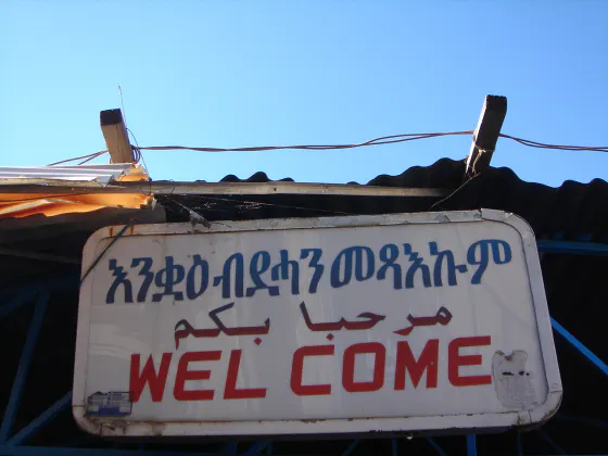 (写真はエリトリアの自転車屋さんにあった看板です。現地では「ティグリニャ語」が話されています。アフリカで独自の文字を持っているのはエリトリアとエチオピアだけです。)