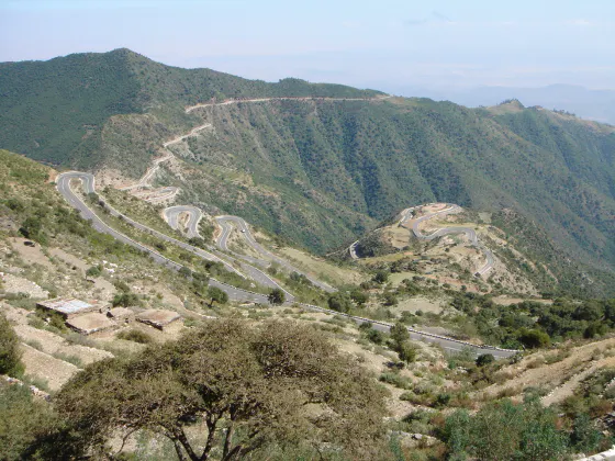 エリトリアの首都アスマラから、紅海沿岸の町マッサワへ続く道の写真です。