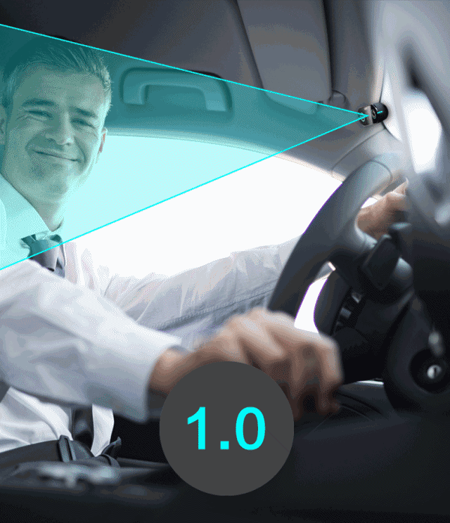 エンジンをかけ、車を発進させる前に本体内蔵のカメラで顔を自動でスキャンして目を閉じた時や脇見をした際に音声で警告します。運転手の交代や再スキャンもワンタッチでOK