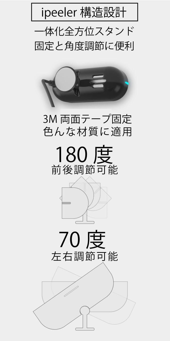 iPeeler本体を運転手の顔が見える位置に付属の両面テープで設置