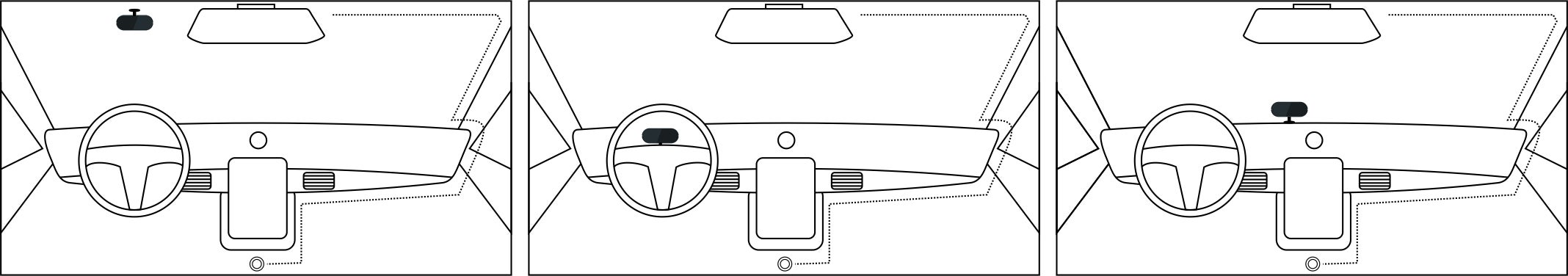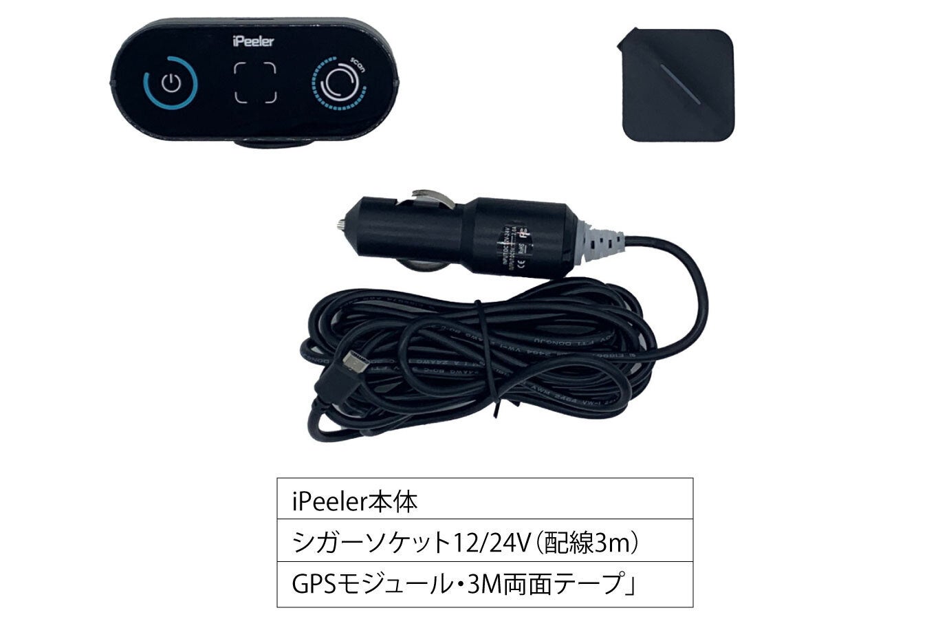 iPeeler本体を運転手の顔と正対する位置に付属の両面テープで貼り付けます。(運転席から45〜65cmの位置に取り付けてください)同様にGPSモジュールを付属の両面テープでダッシュボード周辺に貼り付け、電源は車両のシガーソケットに差し込むだけ