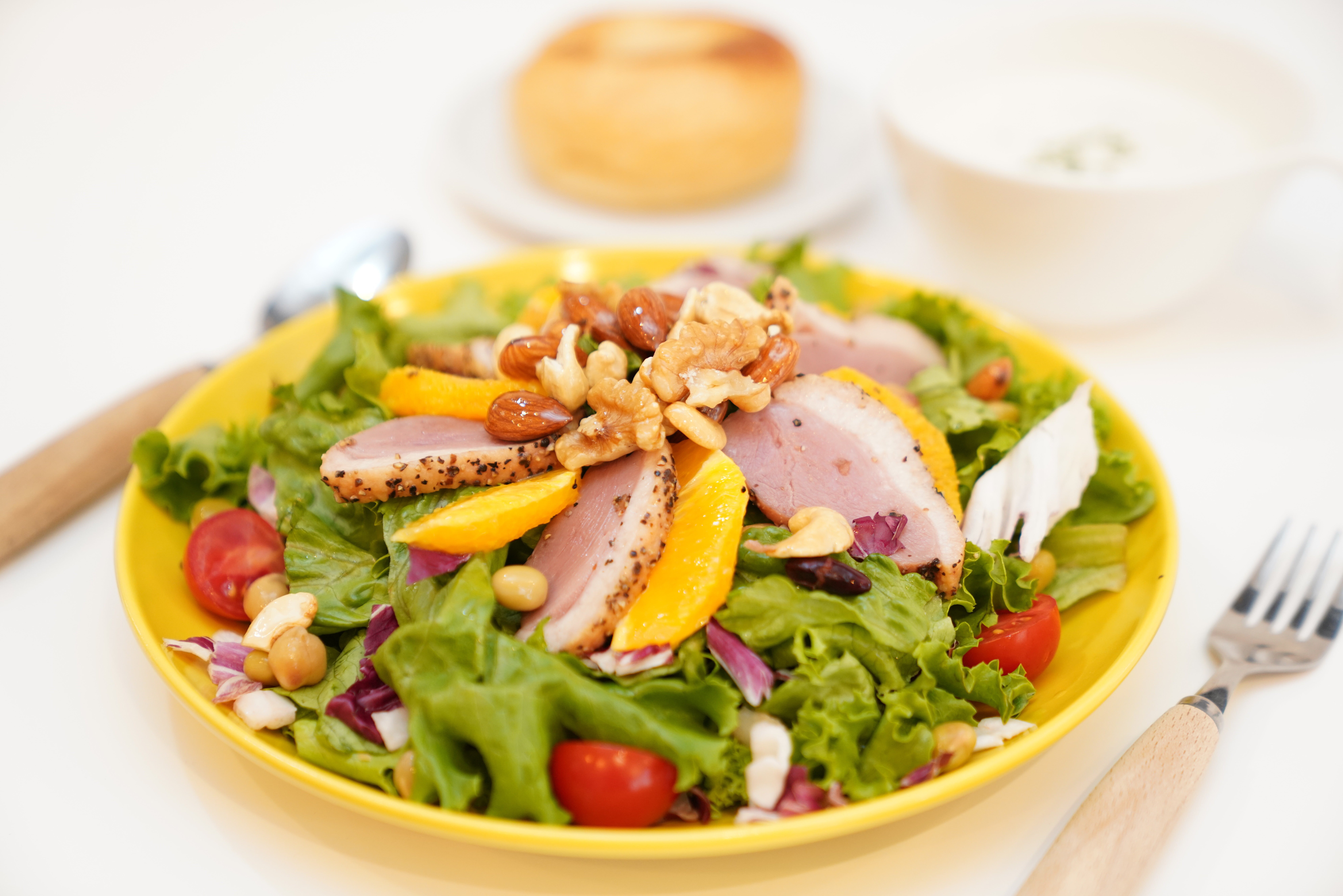 私たちが作っているのはただのサラダではありません。パワーサラダとはお肉や魚、ナッツ類やチーズなどのタンパク質、フレッシュな果物が入ったボリューム満点のサラダです。食べるだけで大満足、思わず‶ハイファイブ”したくなるはずです。