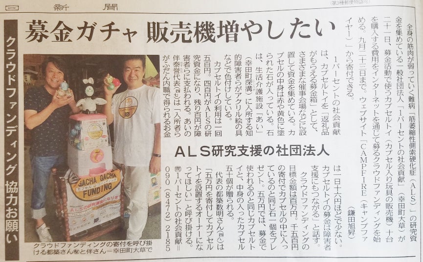 【ALSの研究資金を集める募金箱「カプセル ファンディング」をひろめたい】