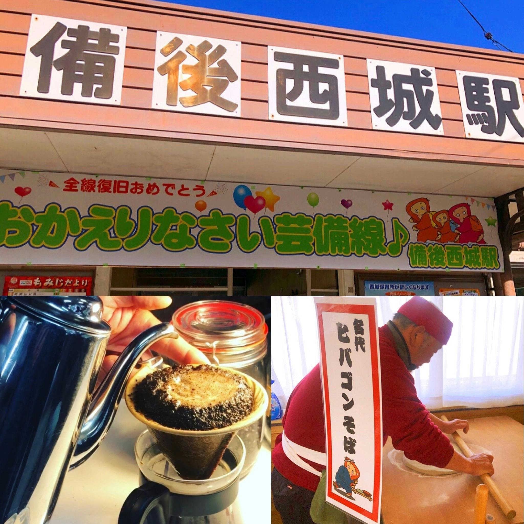 庄原市西城町の地域活性化と芸備線を守りたいという思いから、西城蕎麦生産組合と町内で珈琲店を営んでいるオーナーさんにご協力いただき備後西城駅EKINAKAをオープンしました。