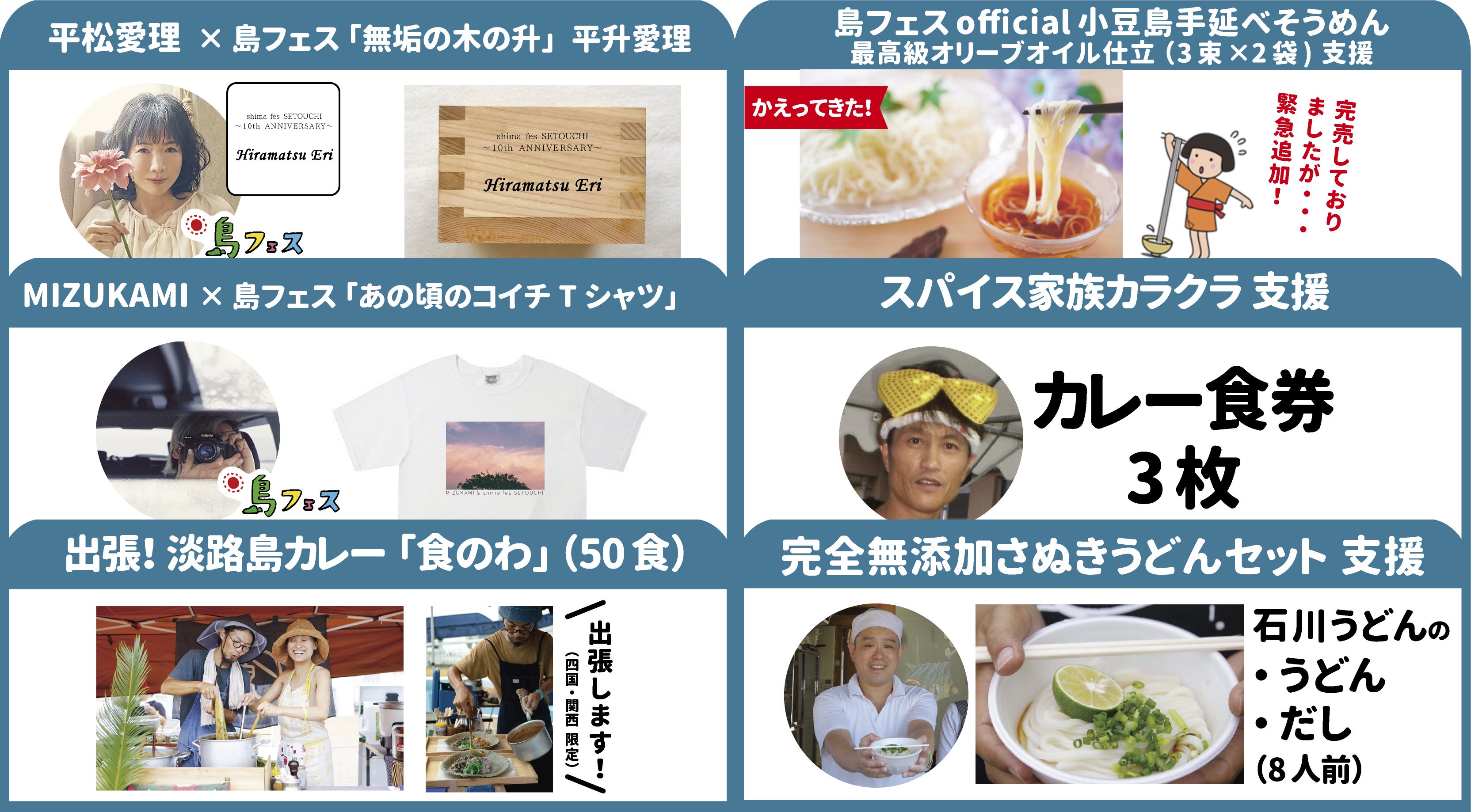 そしてそれだけではなく、この10年間で島フェスが出逢い、愛を語り合ってきた素晴らしいアーティストや出店者、島の方々も含めて支援が巡り支え合えるようなかたちを目指しています。