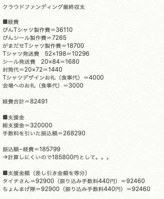 さて、10月29日にキャンプファイヤーからの入金があり、本日、諸経費を除いた金額を等分してSmile for Nippon(ちょんまげ隊)とタイチジャングルさんに振り込ませていただきました。