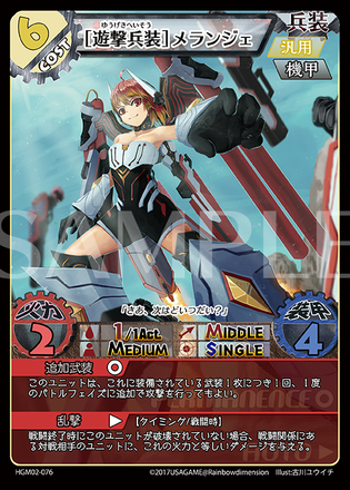 全体的な性能はコスト6にしては控えめなものの、装備している武装カードの分追加で攻撃宣言できる能力を持っています。