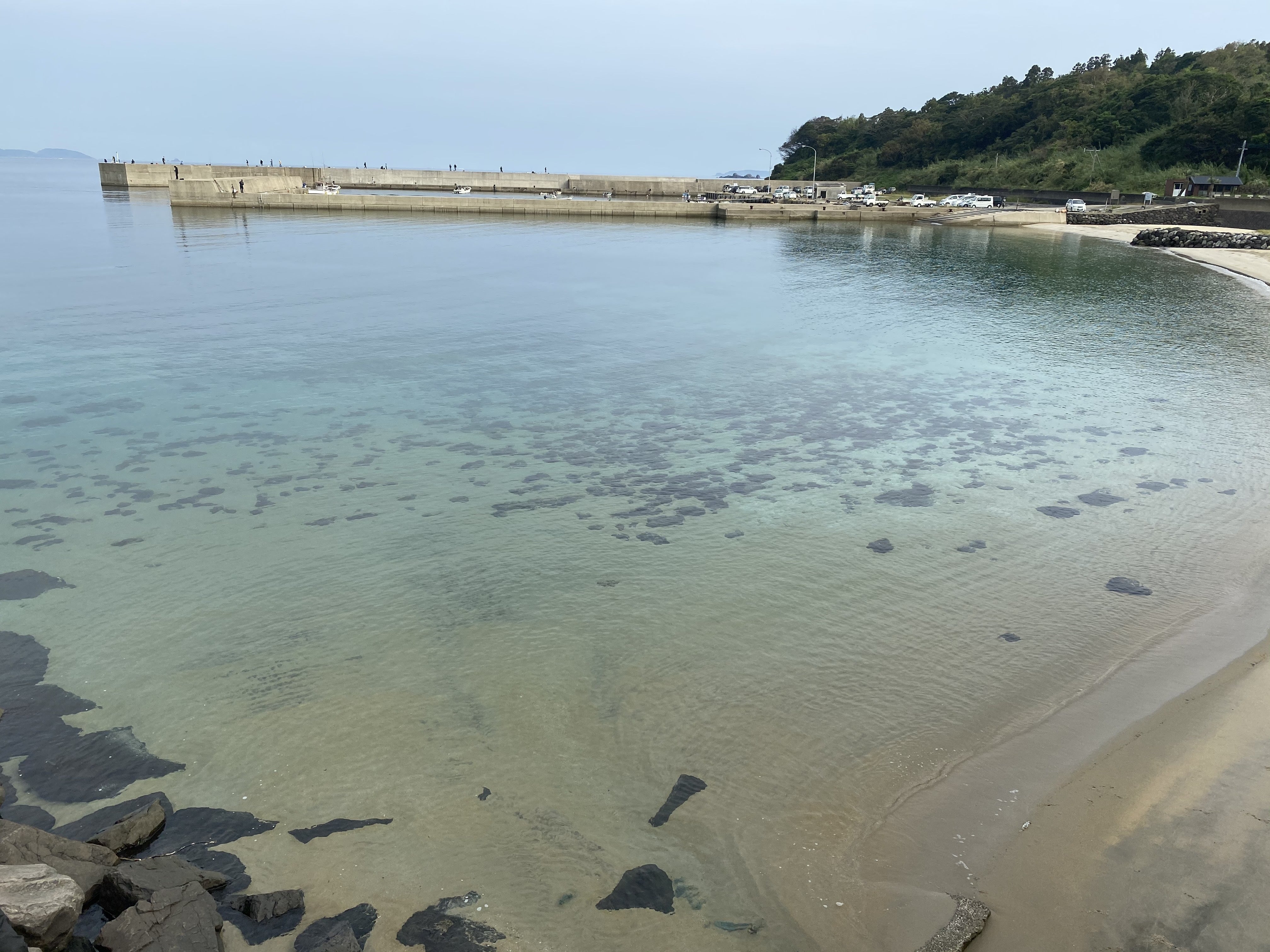 右の波止は足場が高く大物狙う人はタモを忘れずに。春・秋にエギングでアオリイカを狙うのが人気。