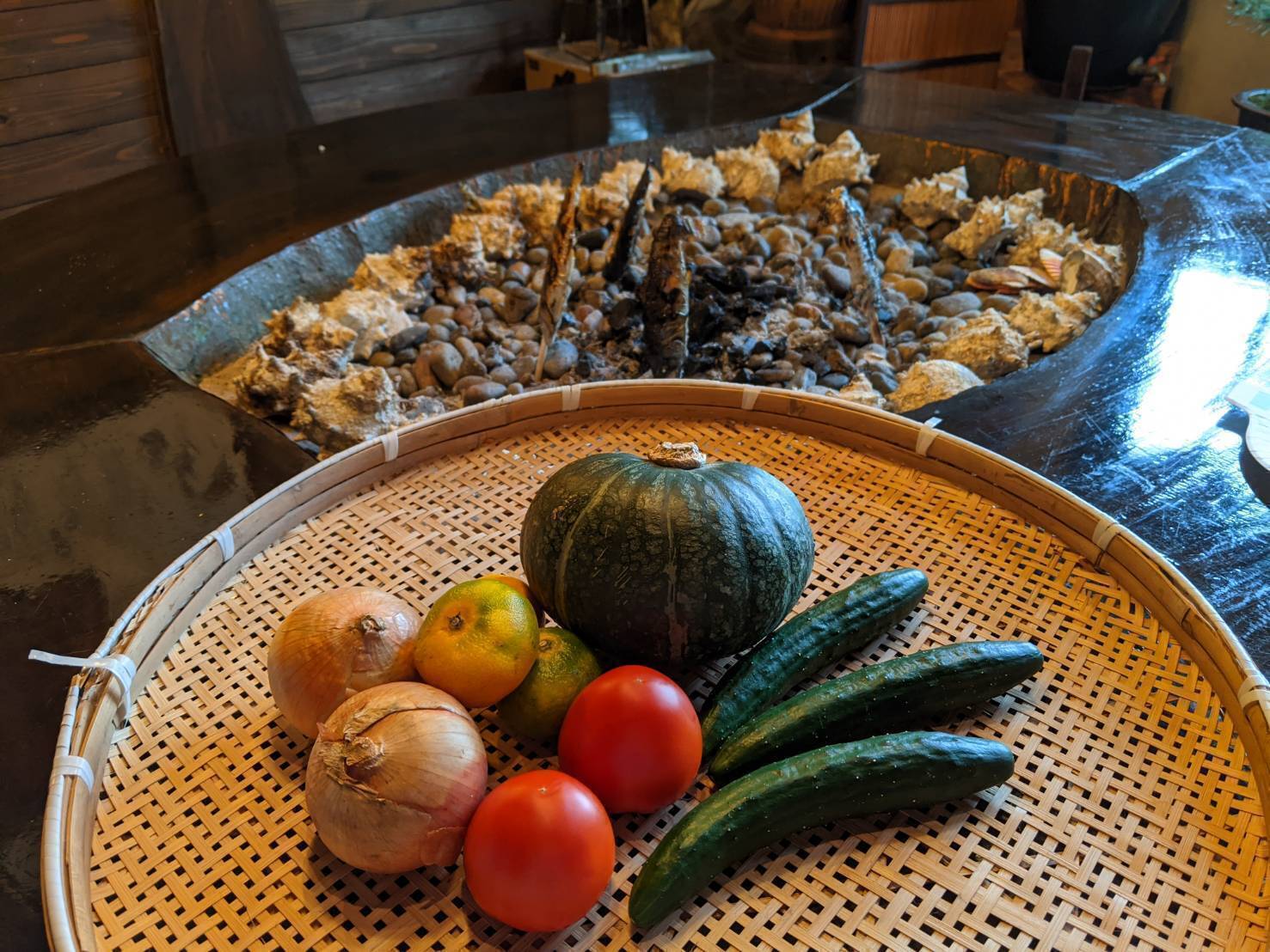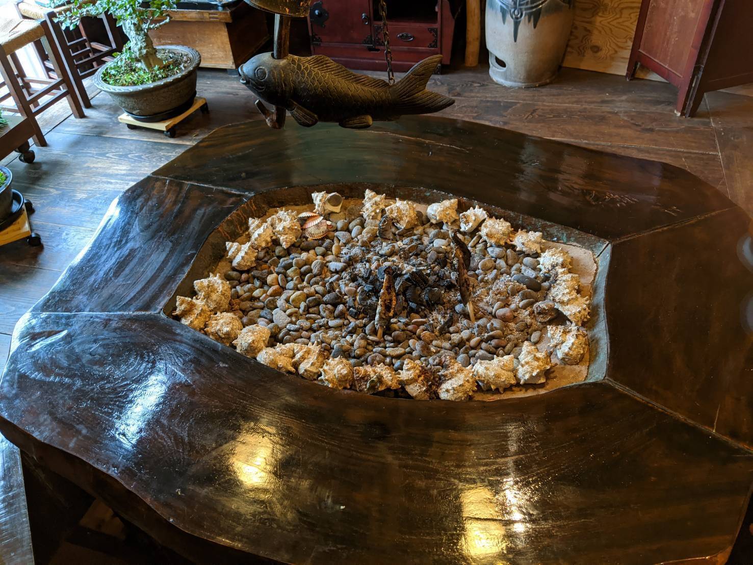 屋内は囲炉裏、バーカウンター、そば打ち小屋、音楽ステージ